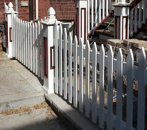 别墅庭院尖头木栅栏 精美艺术立柱设计